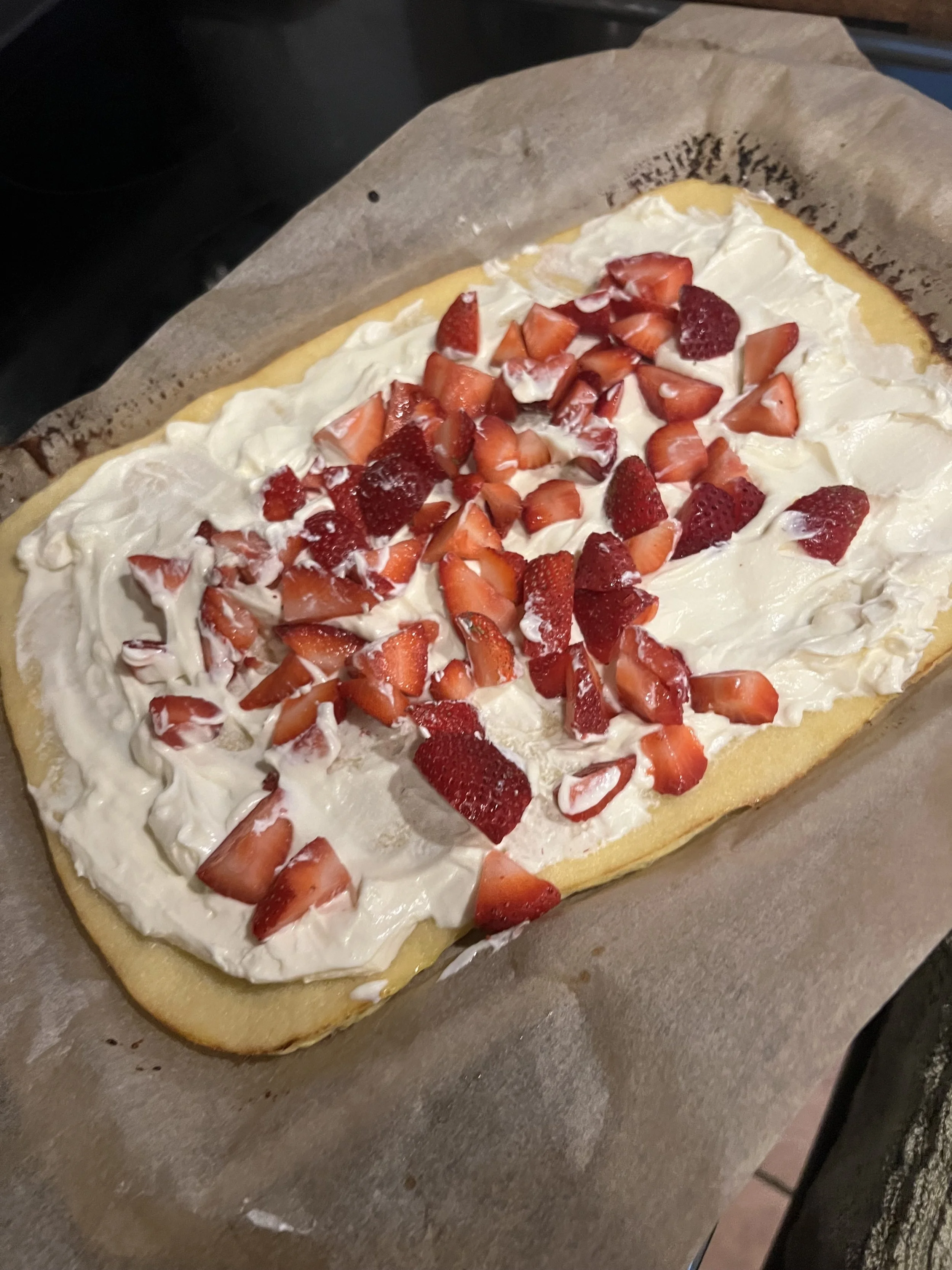 Let cool 2–3 minutes, then spread filling and roll while still warm.